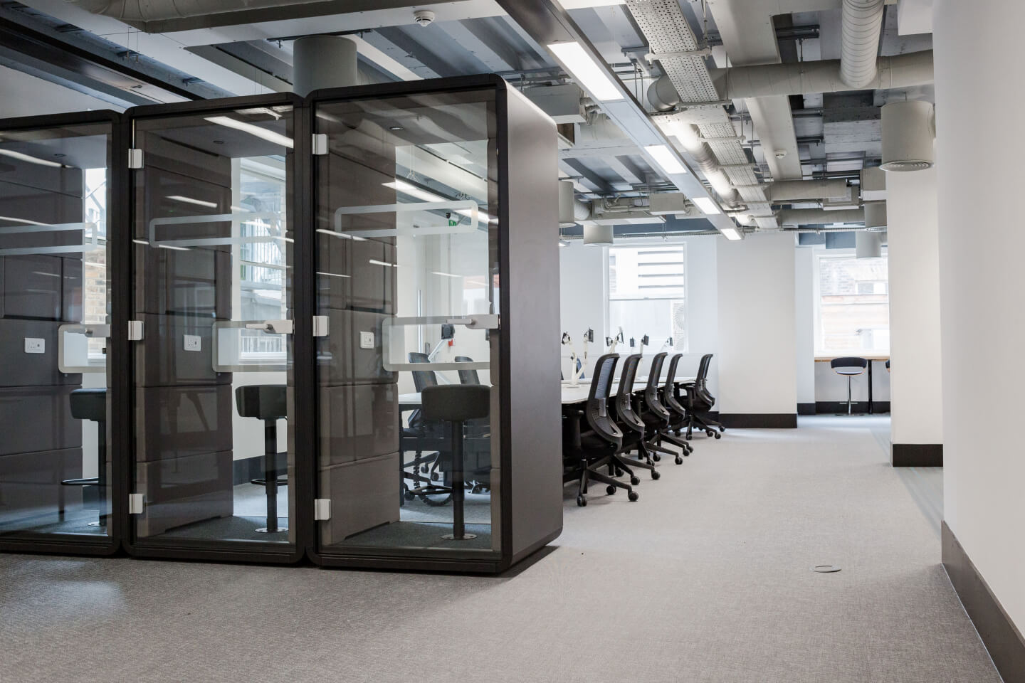 Shaftesbury Capital appointed Grangewood Builders Ltd to complete a full Cat B fit-out of an entire 2000 sq. ft floor into intelligent future forward office space. We particularly liked the ‘conversation pods’ within the space, for privacy when needed. A fast-track transformation within 13 weeks allowed this space to be let to its new tenants.
